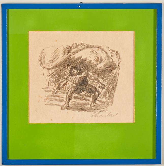 1870 Wedel/Holstein - 1938 Rostock - "Prometheus I (Der Empörer)" - (1923/24) Lithografie/Papier. 14,5 x 17,3 cm, 19 x 22 cm (Passepartoutausschnitt). 34 x 34 cm (Maß mit Rahmen). Sign. r. u.: EBarlach. Passepartout. Unter Glas gerahmt. Leicht gebräunt. Stockfleckig. - Lit.: Schult 240. Deutscher Bildhauer, Grafiker und Schriftsteller. 1888 bis 1891 Studium an der Kunstgewerbeschule in Hamburg, der Dresdner Akademie sowie an der Académie Julian in Paris.
