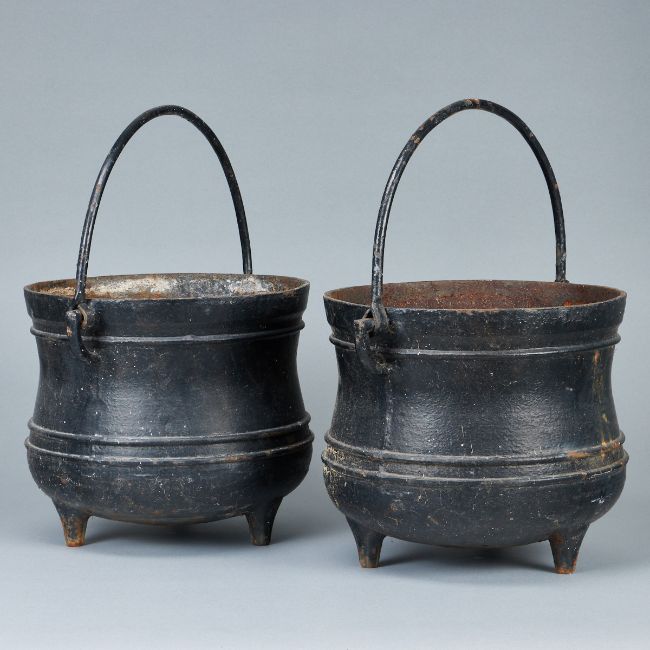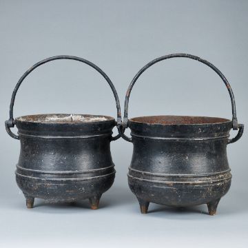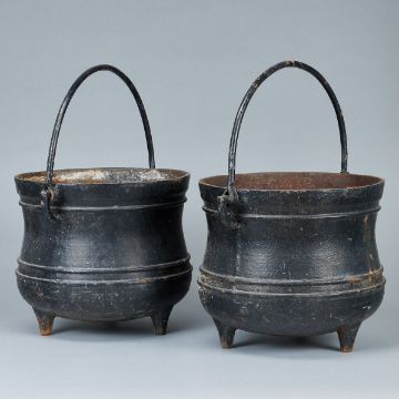deutsch, 19. Jahrhundert. Eisen, H. 26 cm, D. 30 cm. Je ein Bohrloch im Boden, Rost innenseitig, Spuren v. Alter u. Gebrauch.